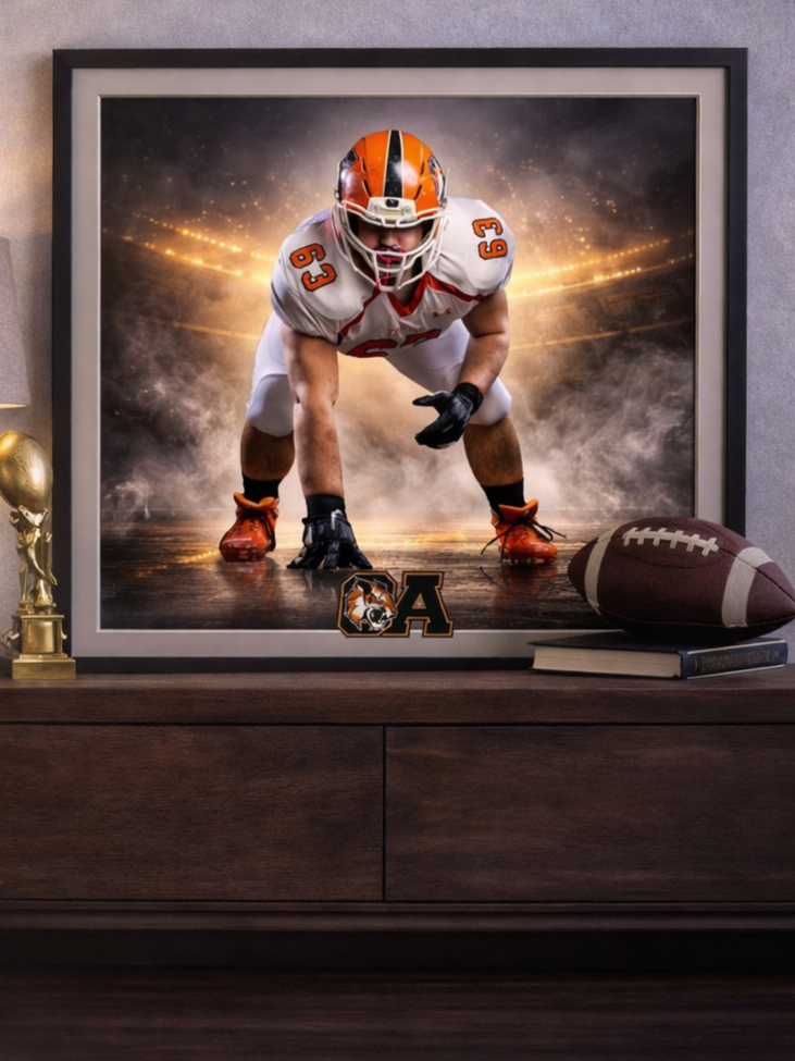 Take your athlete’s portrait beyond the screen. Every piece is custom-designed