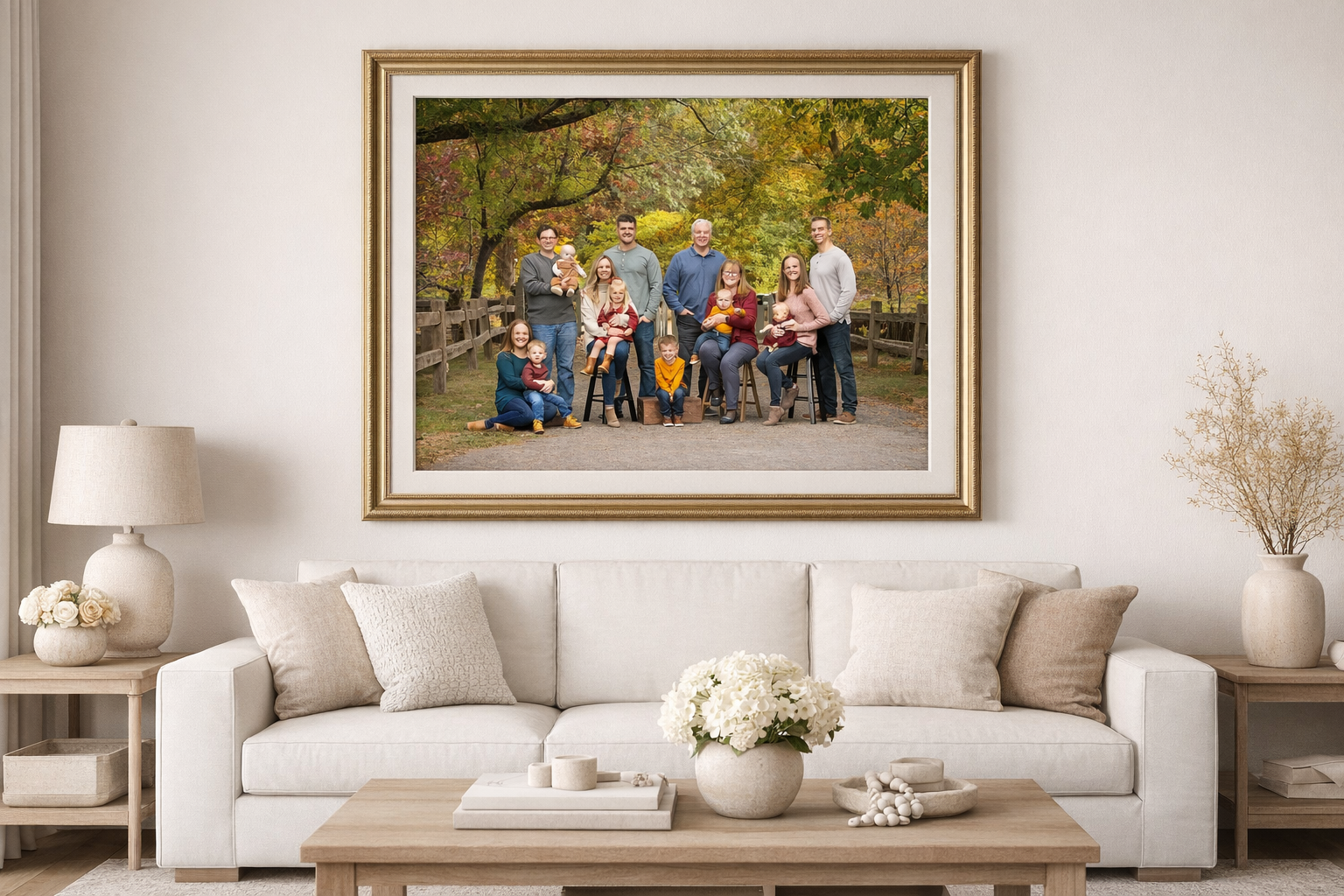 Our state-of-the-art design software allows you to preview your portraits directly on your walls—so you can confidently choose the perfect size, scale, and placement before anything is created.